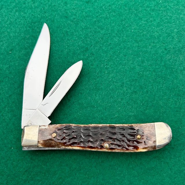 **SOLD** Up for sale is a Case XX USA 6207 Mini Trapper made in 1978. The blades have their factory edge, half stops and good snap. Jigged bone handles are in wonderful shape. Nickel silver bolsters and brass liners. The blades show some carbon spots as seen in the pictures but overall great shape. The knife measures just short of 3 1/2″ closed. A very nice knife for your collection!